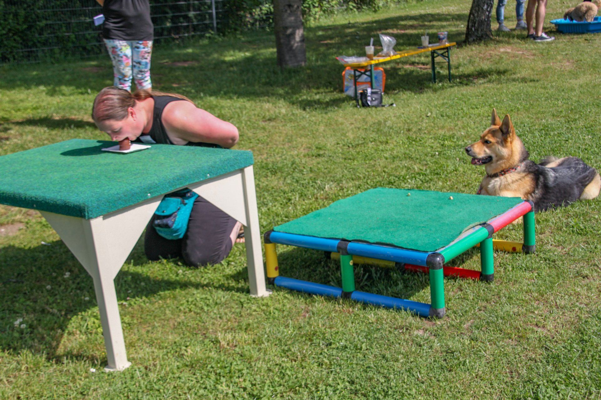 26 Hund-Mensch-Teams hatten sich für die Teilnahme an unserer Gaudi Rally angemeldet. So konnte sich jedes Team auf viel Spiel & Spaß freuen. Ganz nach dem Motto „Gemeinsam sind wir stark“ mussten verschiedene Aufgaben gemeistert werden. Sackhüpfen, eine tolle Geschichte über den Verein, Brücke bauen, Balancieren und Krabbeln waren dabei nur ein paar Wenige der ganzen tollen Herausforderungen, welche in Teamarbeit absolviert werden mussten.