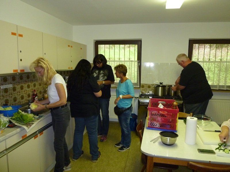 Los ging es am Freitag mit einem gemeinsamen, selbstgekochten Abendessen im „Naturfreundehaus im Grüntällein“ bei Treuchtlingen. Nach köstlicher Spaghetti Bolognese genoss man den Abend im Garten der Jugendherberge und schmiedete Pläne für den nächsten Tag.